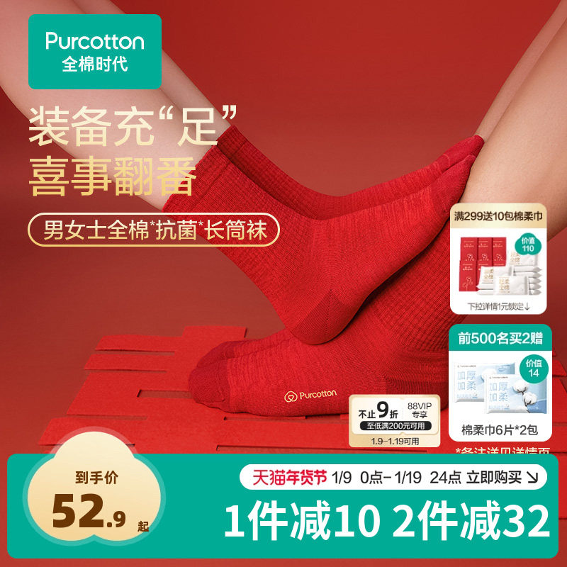 【Hongyun Socks】Cotton era men's and women's red stockings, natal year couple mid-stockings, New Year's Spring Festival gifts, Year of the Horse