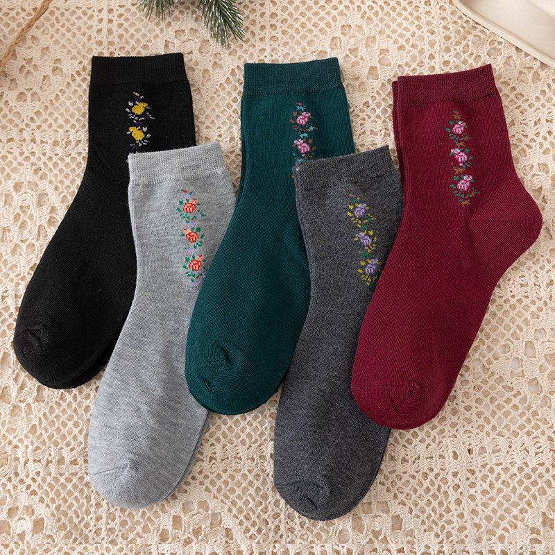 Mid-leg socks women's spring, autumn and winter mom style middle-aged sports warm socks wide-mouth socks grandma sweat absorption and odor resistance