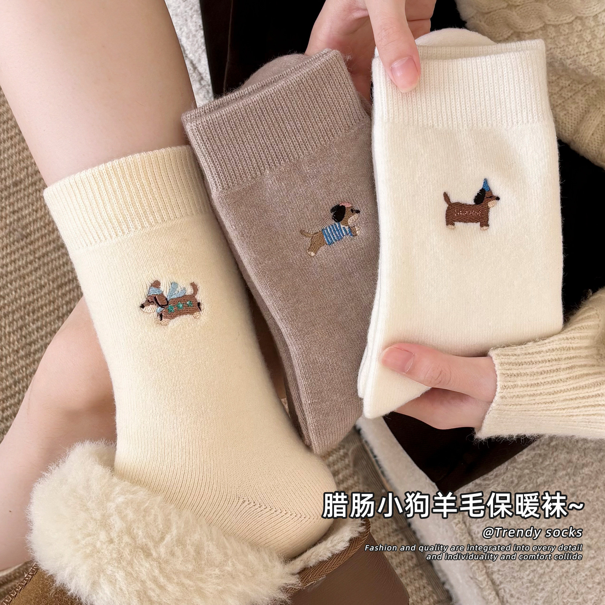 Cute wool socks women's mid-leg socks winter girls puppy cashmere thick socks new women's socks thickened women's socks