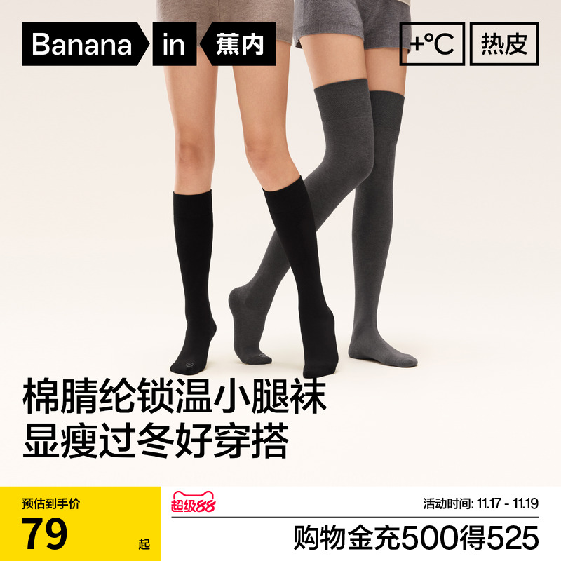 Banana inner hot leather 5 series socks women's calf socks thickened stockings high socks black over the knee socks winter