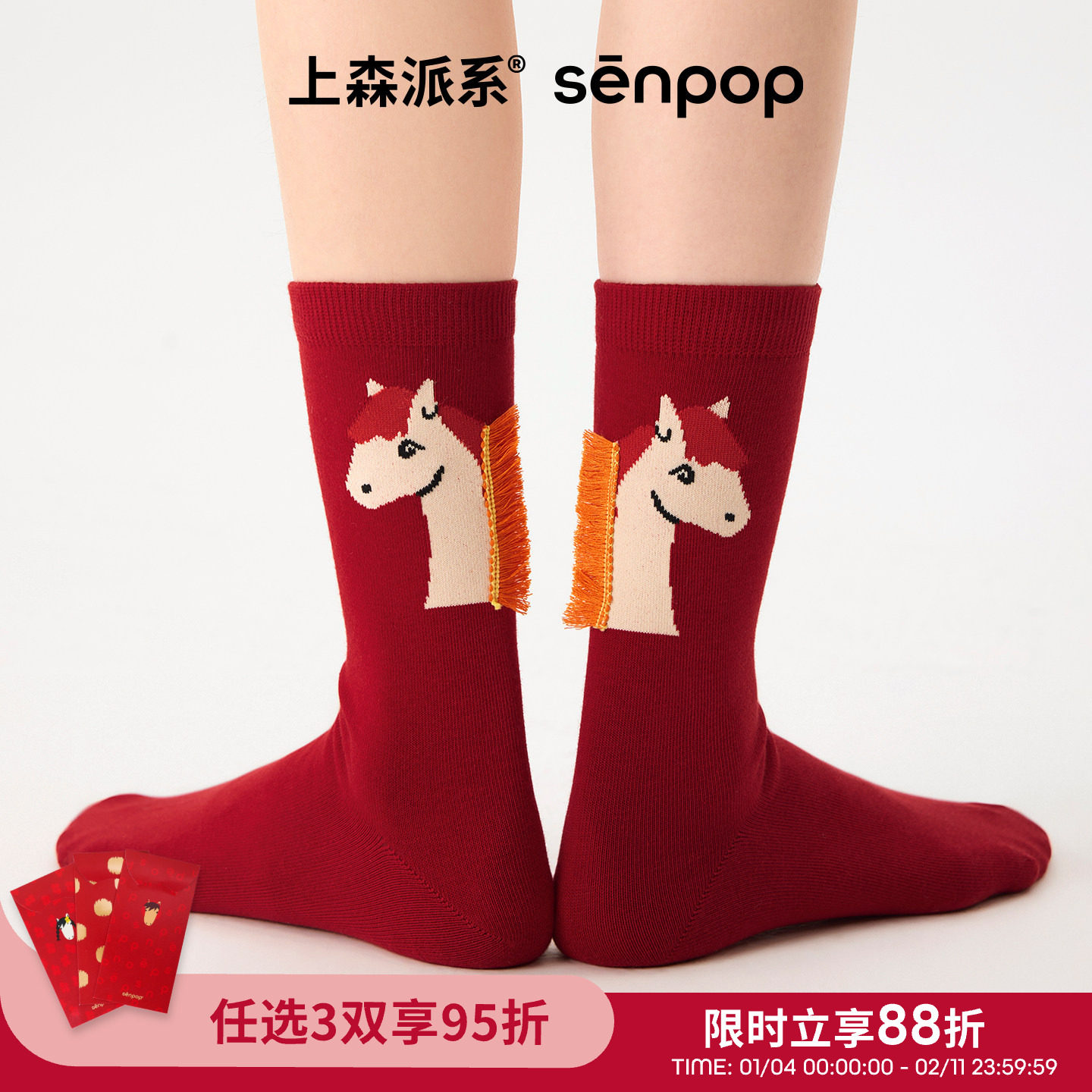 Paimi Red Socks Women's Autumn and Winter Mid-Leg Socks Natal Year Red Socks 2026 Year of the Horse New Year Gift Gift Box