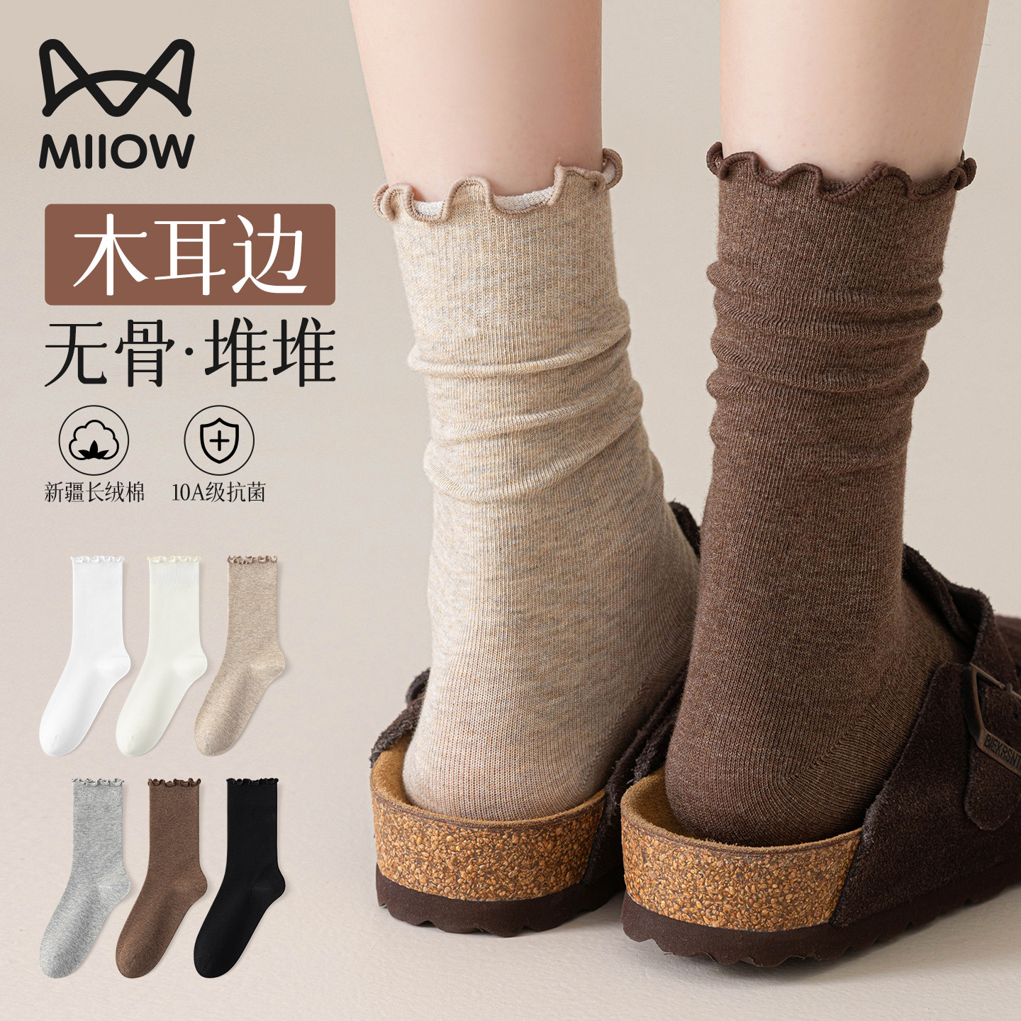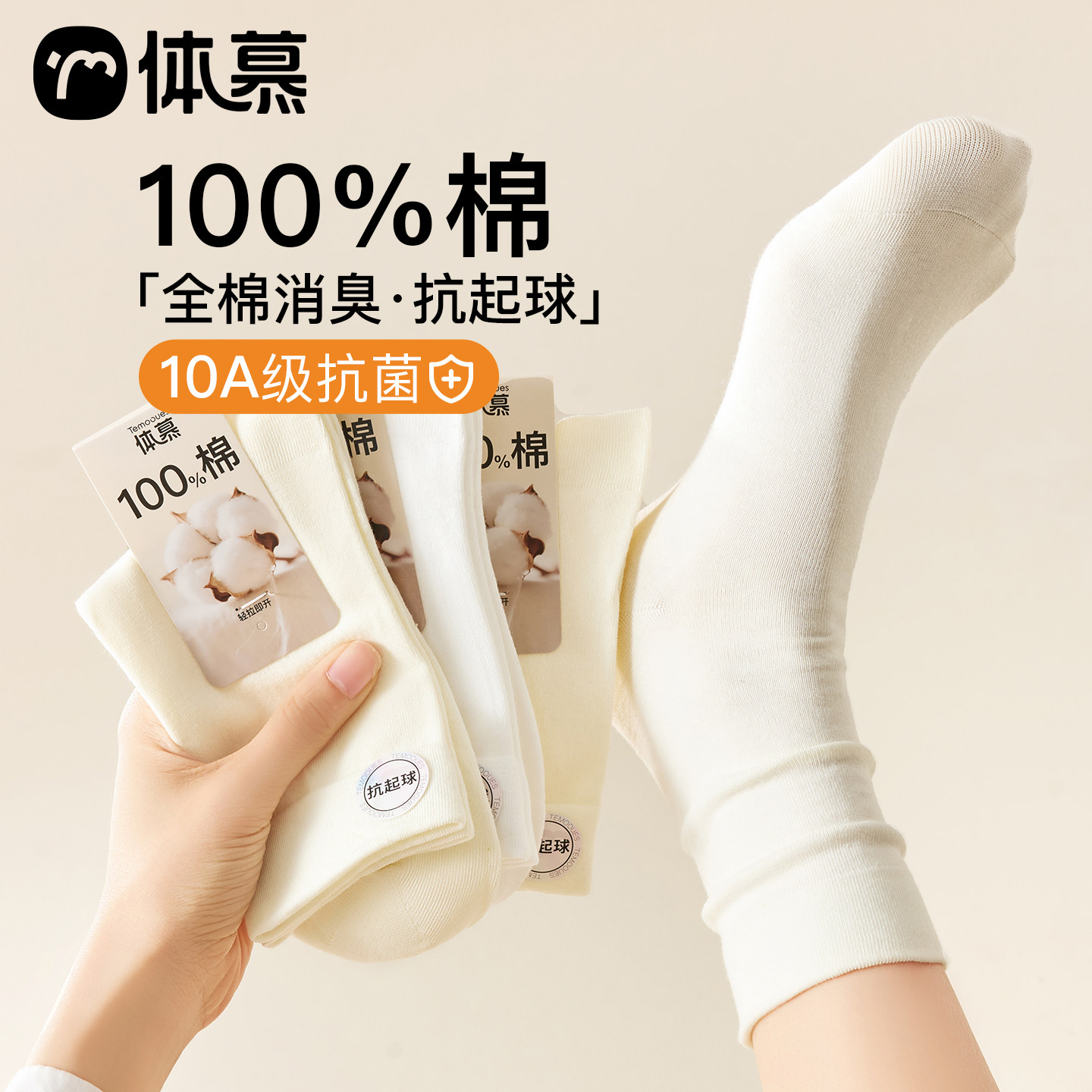 100% pure cotton socks women's autumn and winter mid-leg socks antibacterial and anti-odor anti-pilling confinement socks boneless white stacked socks