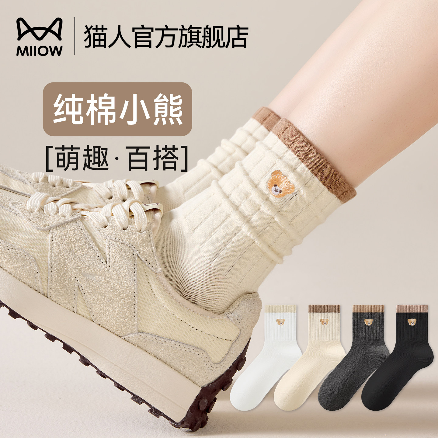 Cat man socks women's autumn and winter pure cotton mid-leg socks 2025 new popular anti-odor bear embroidered confinement stockings