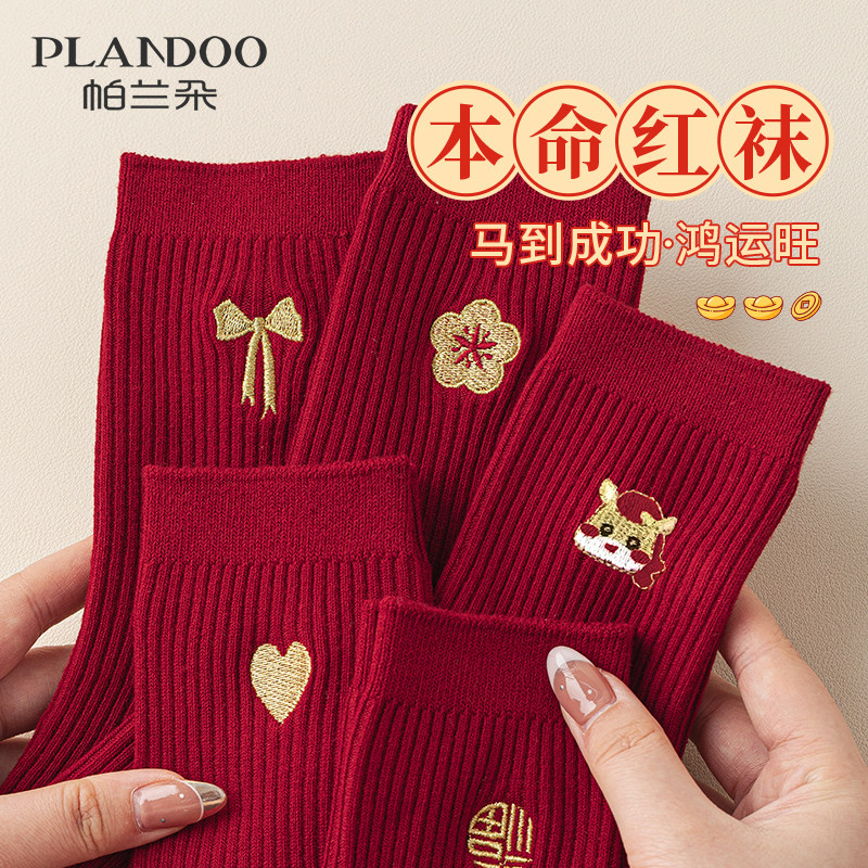 Natal Year Red Socks Women's 2026 Year of the Horse Mid-Leg Socks Pure Cotton Red Horse Autumn and Winter New Year's Gift Stockings