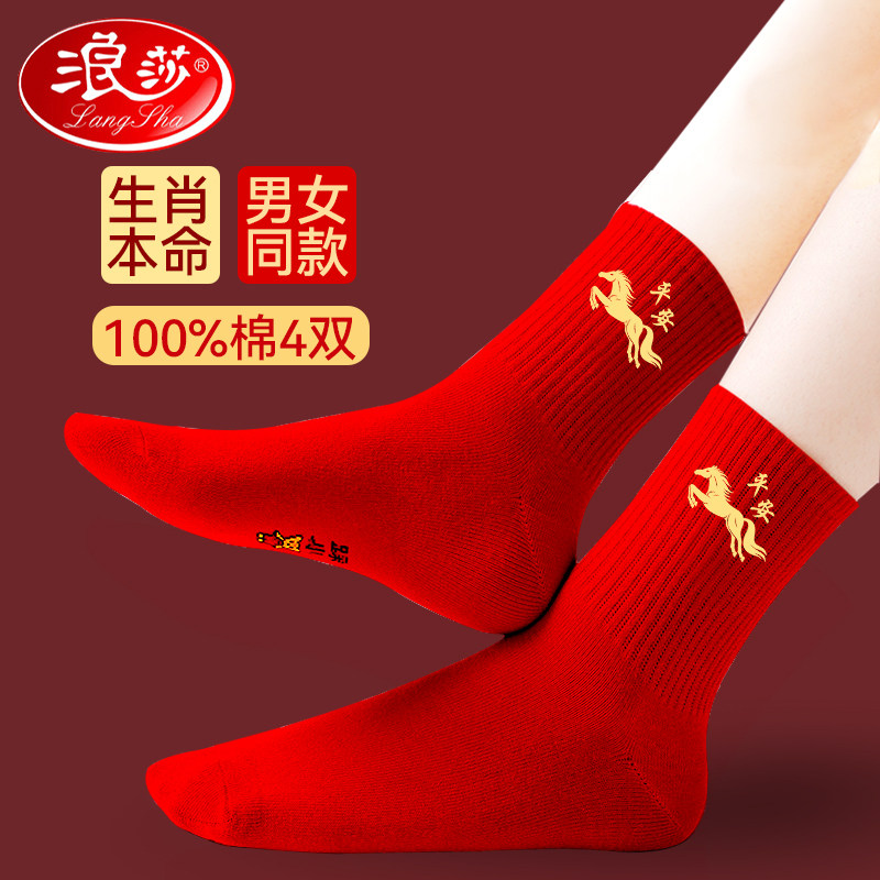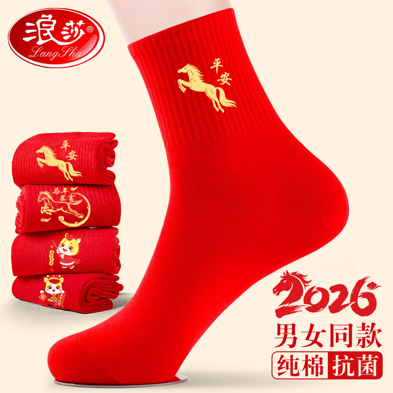 Langsha Red Socks Natal Year Couple Pair Men's and Women's Pair Pure Cotton Antibacterial 2026 Year of the Horse Wedding Gift for the New Year