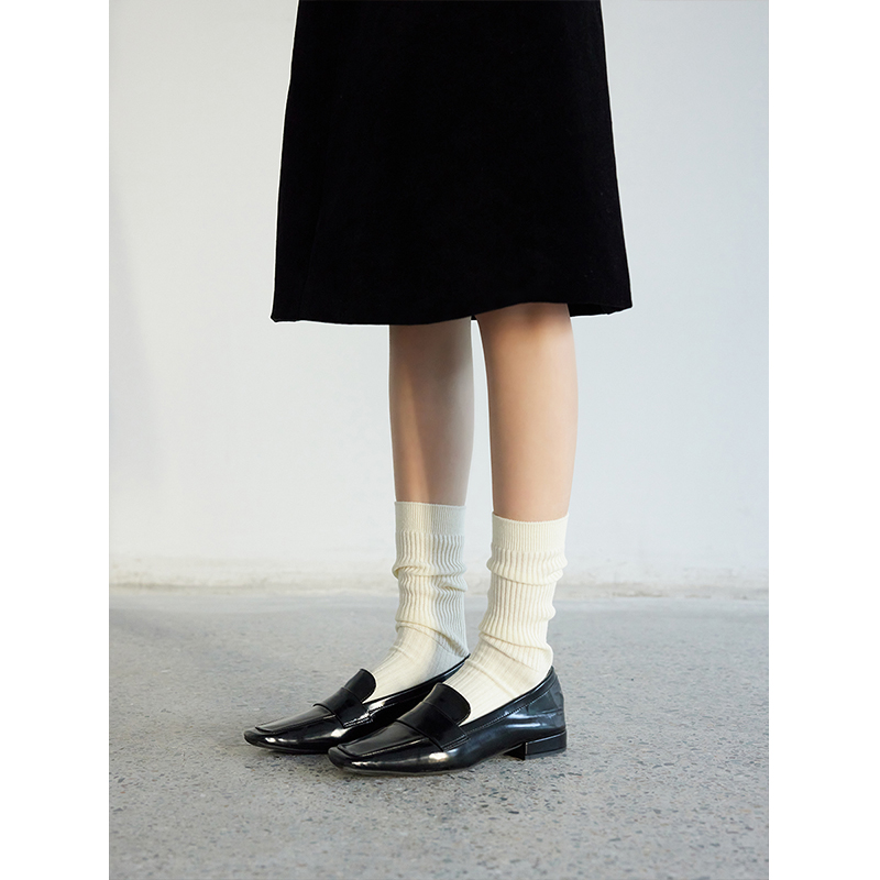 Retro relaxation|YANGMA socks women's autumn and winter white mid-leg socks Japanese pile socks calf long cotton socks