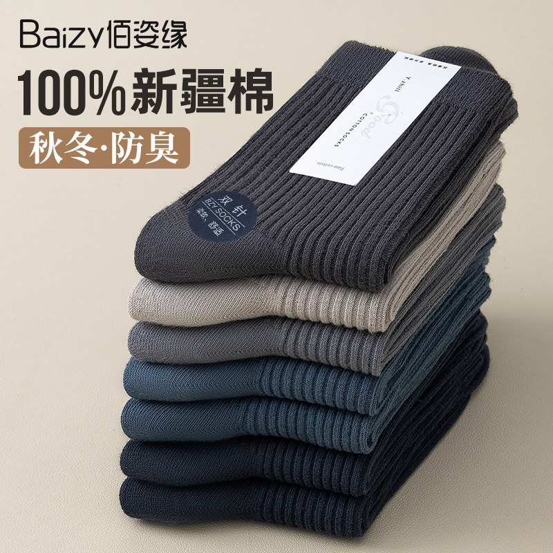 Socks men's cotton anti-odor 7A antibacterial sweat-absorbing spring and autumn socks men's black and white autumn and winter Xinjiang cotton