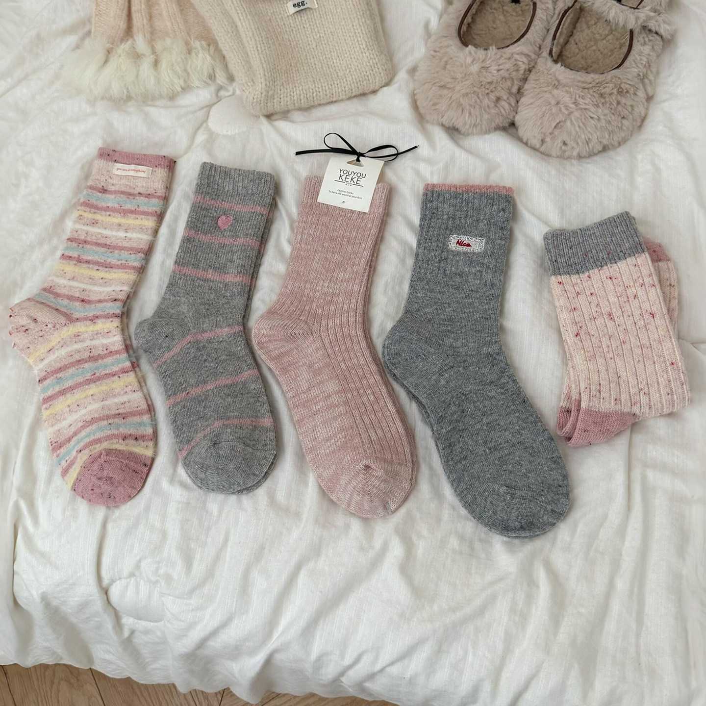 The girlish gray pink is really amazing! It's all wool socks and socks ~ they are suitable for wearing in winter ~ socks are thick