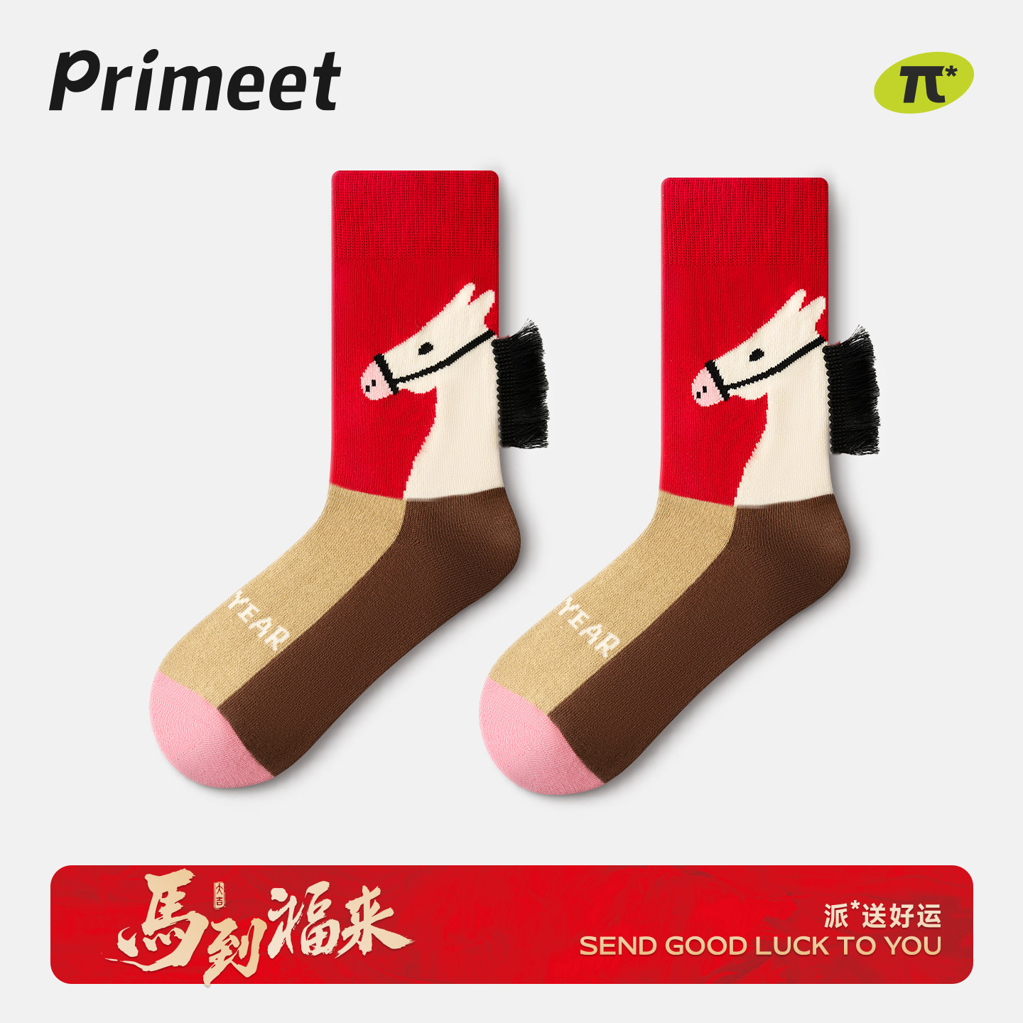 Langsha red socks women's natal year villain picture step on 2026 Horse men's cotton couple wedding gifts