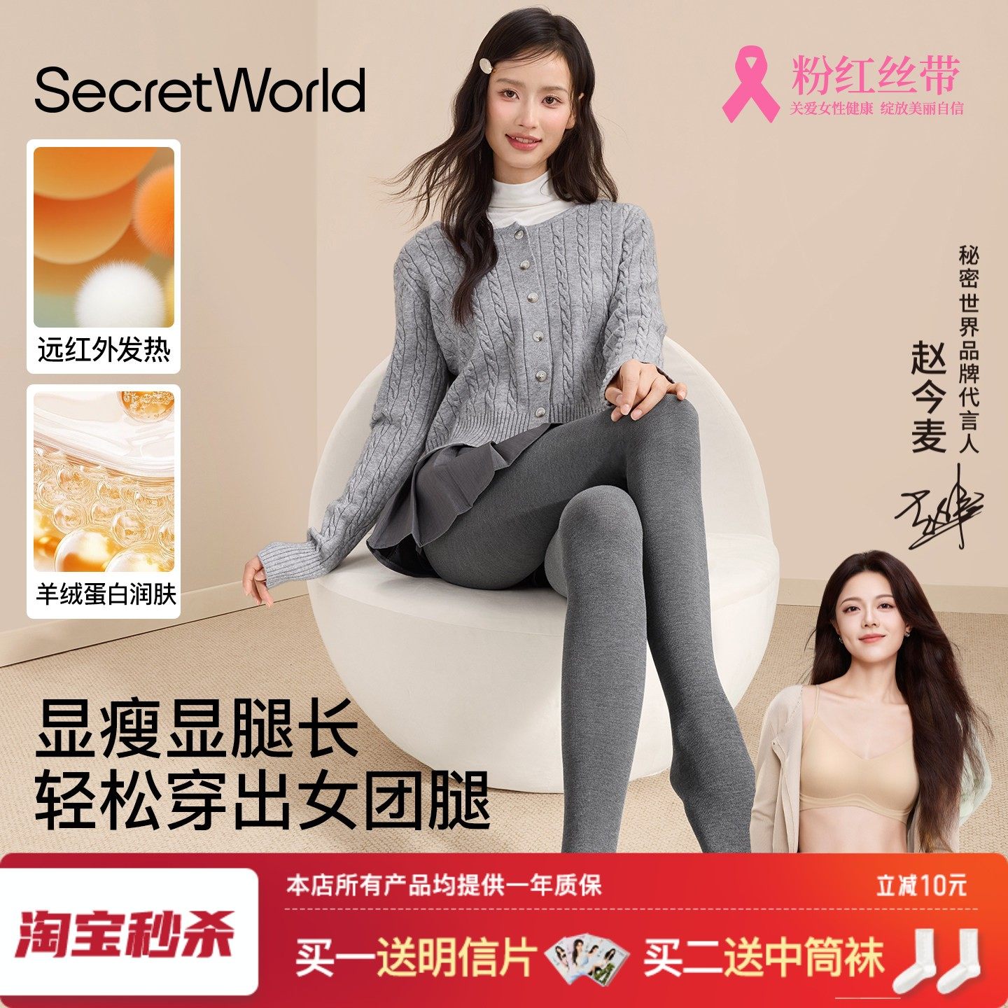 【Yang Mi's same style】Kazuko Ono Leggings Women's 2025 New Gray Wool Pantyhose Plus Fleece Winter Wear