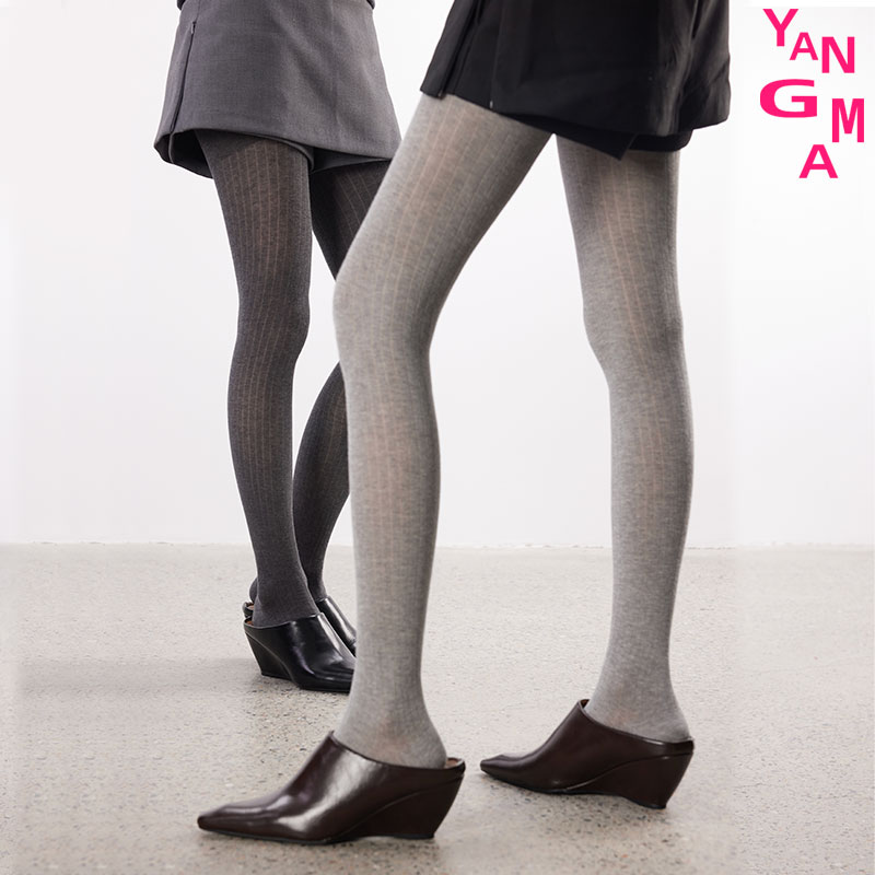YANGMA Fall/Winter Knitted Pantyhose Women's Outer Wear Vertical Pattern Bottom Socks Gray Miu Socks Pants Winter Leggings