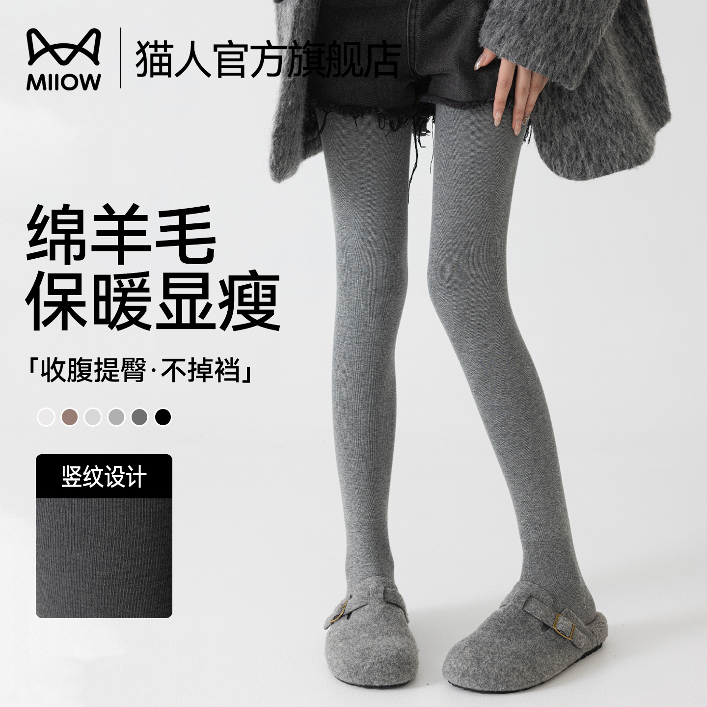 Cat man gray leggings women's autumn and winter wool warm, slightly pressed slim and fleece thick and wearing gray pantyhose