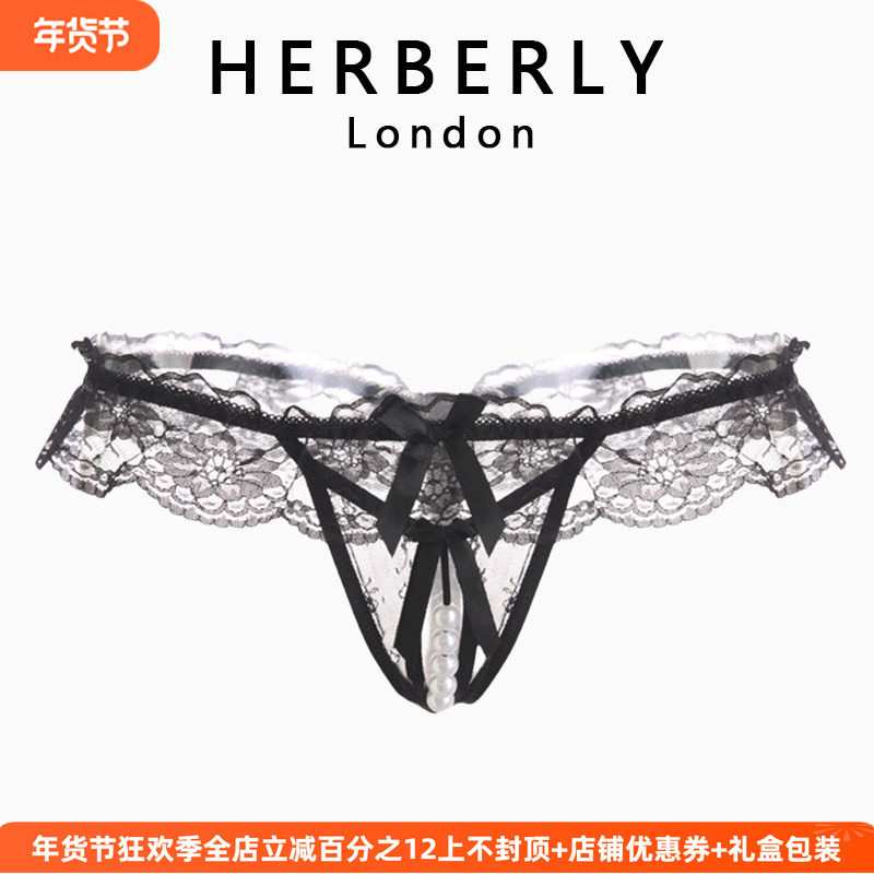 British HERBERLY Sexual Interest Pearl Lace Suspenders Open Crotch No Temptation Thong Set