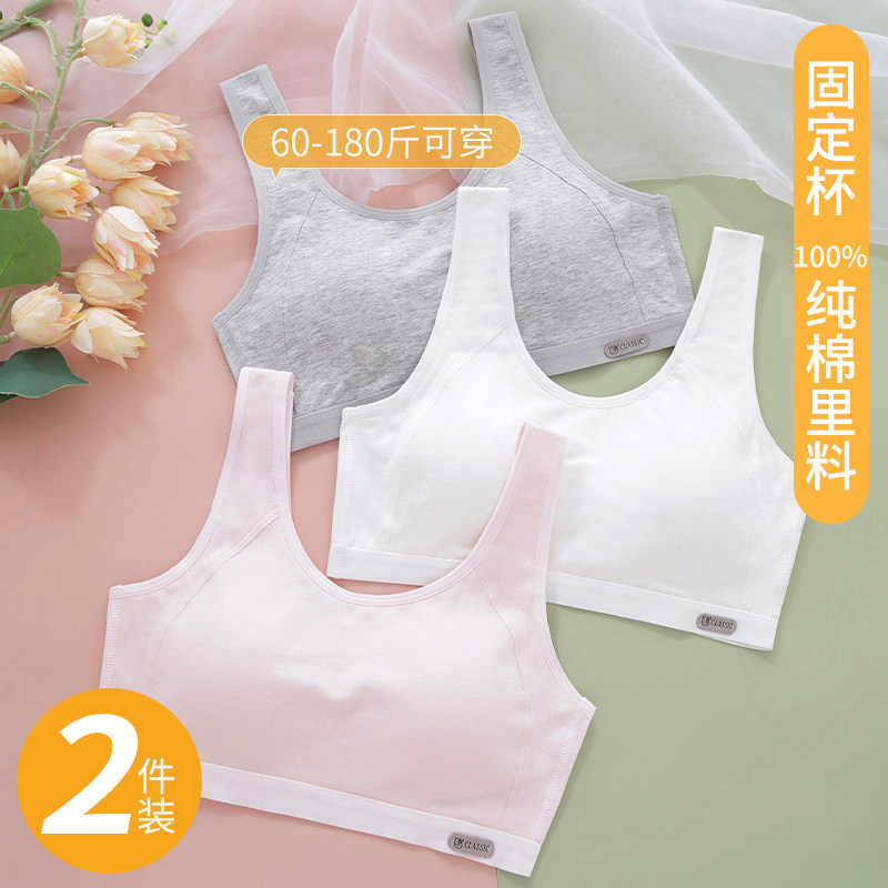 High school underwear female junior high school student developmental girl pure cotton fixed cup large size sports small vest student bra