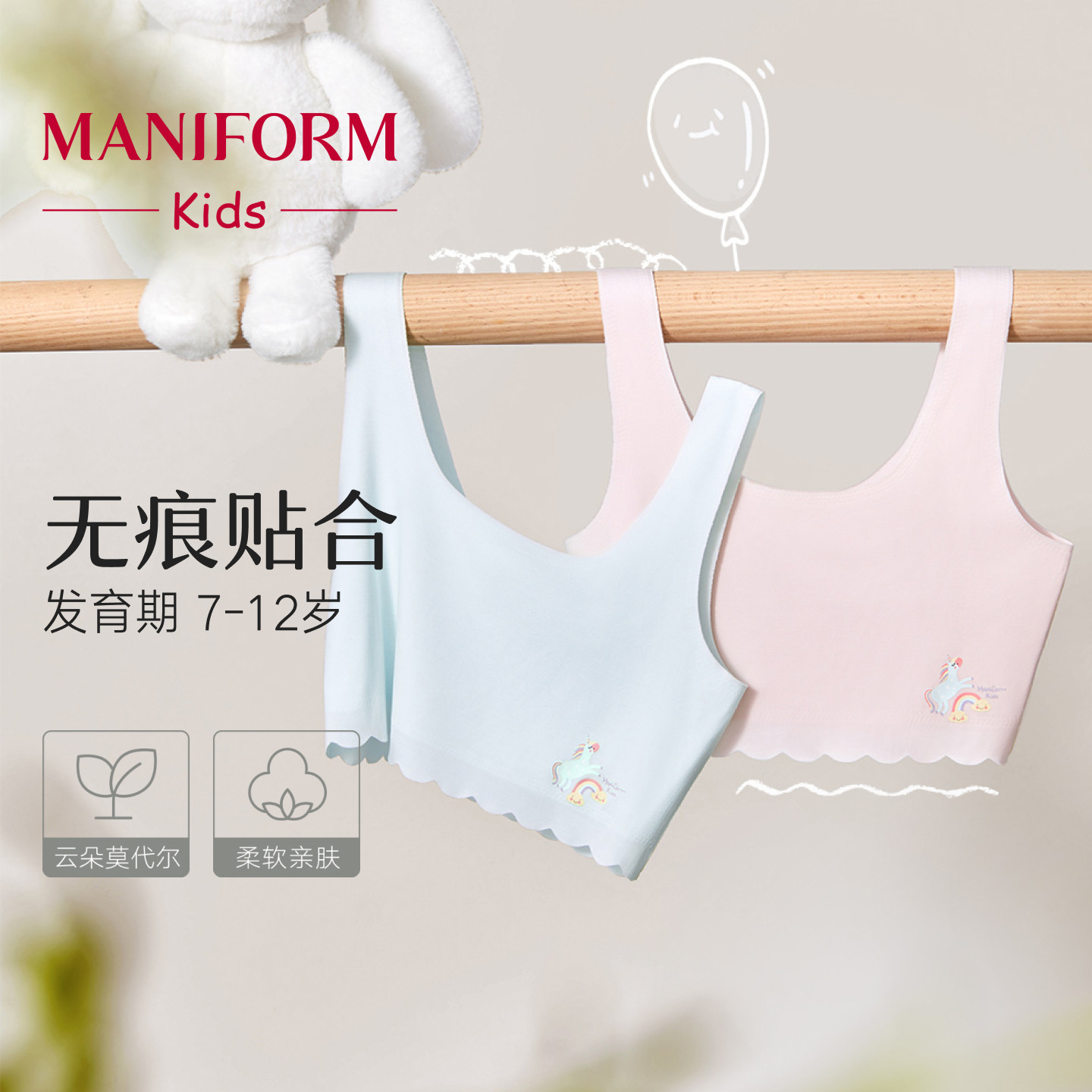 【Stage 3】Manifen Student Girl Seamless Breathable Vest Bra Adolescent Developmental Antibacterial Underwear
