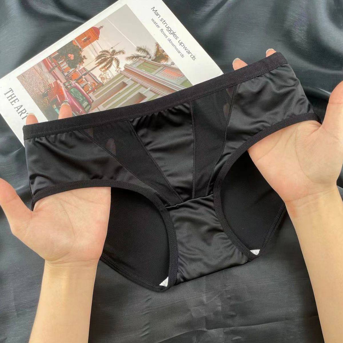 Ice silk pure desire sexy women's panties girl lace edge mesh breathable pure cotton translucent triangle panties women