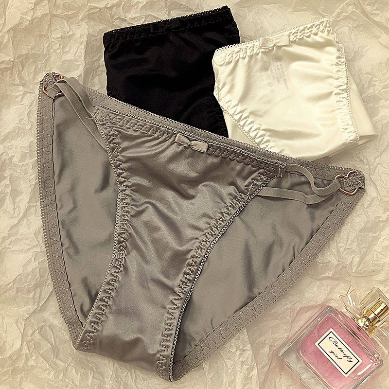 Pure desire girl bow mid-rise ice silk panties cool lace buttocks lifting student briefs pure cotton crotch underwear thin