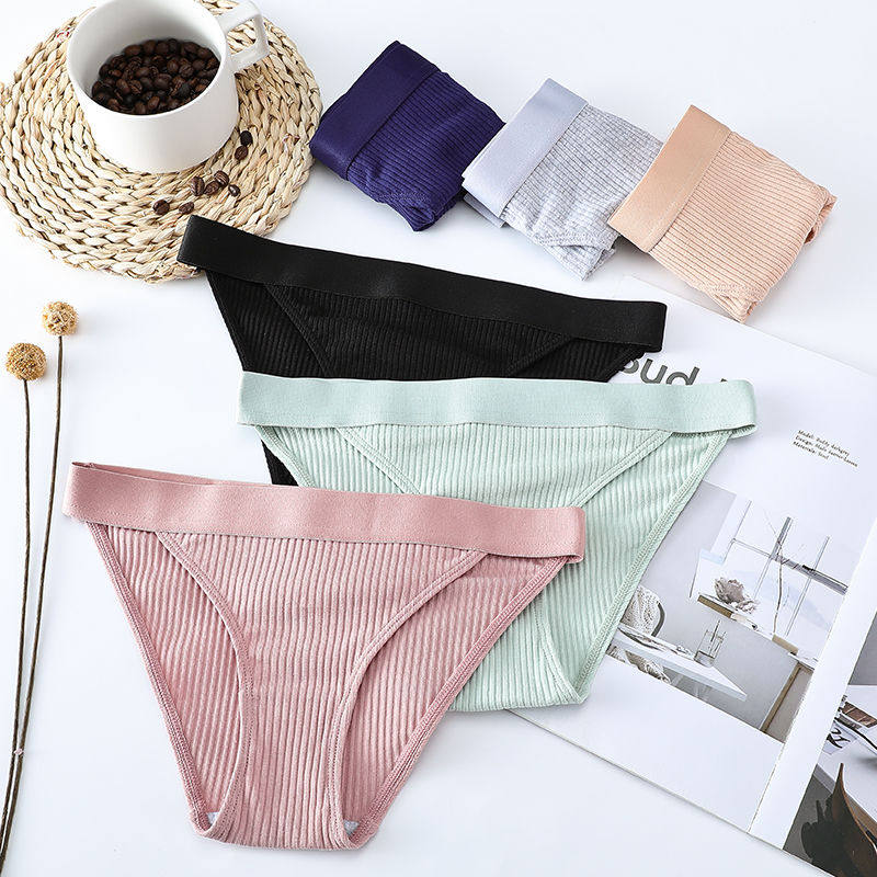 Threaded cotton panties feminine charming pure padded crotch Korean version girl student plus size low-rise lady triangle breathable