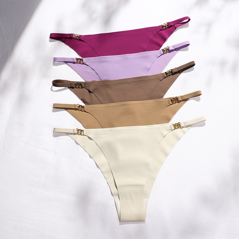 European and American sizes women's thong one-piece double ribbon solid color breathable new spot panties for women