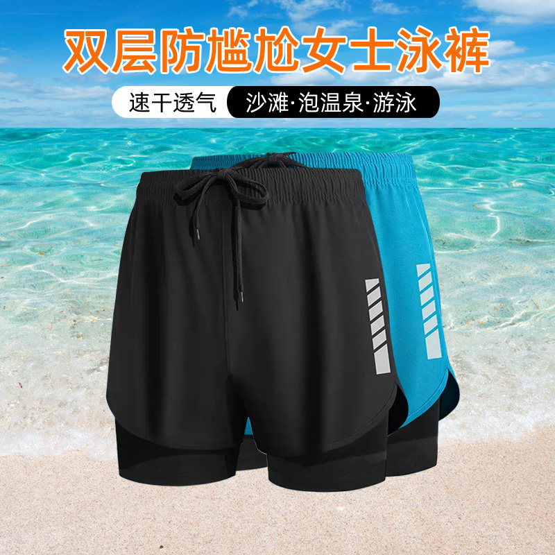 Swimming trunks, women's sports fake, two flat corners, conservative anti-light, slimming, sunscreen, fast-drying hot spring diving surfing shorts
