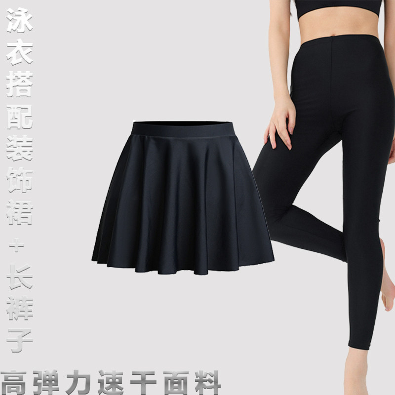 Swimsuit women with skirts, swimming trunks, women's trousers, high elasticity, conservative plus size hip covering, swimming, sunscreen, jellyfish pants, black