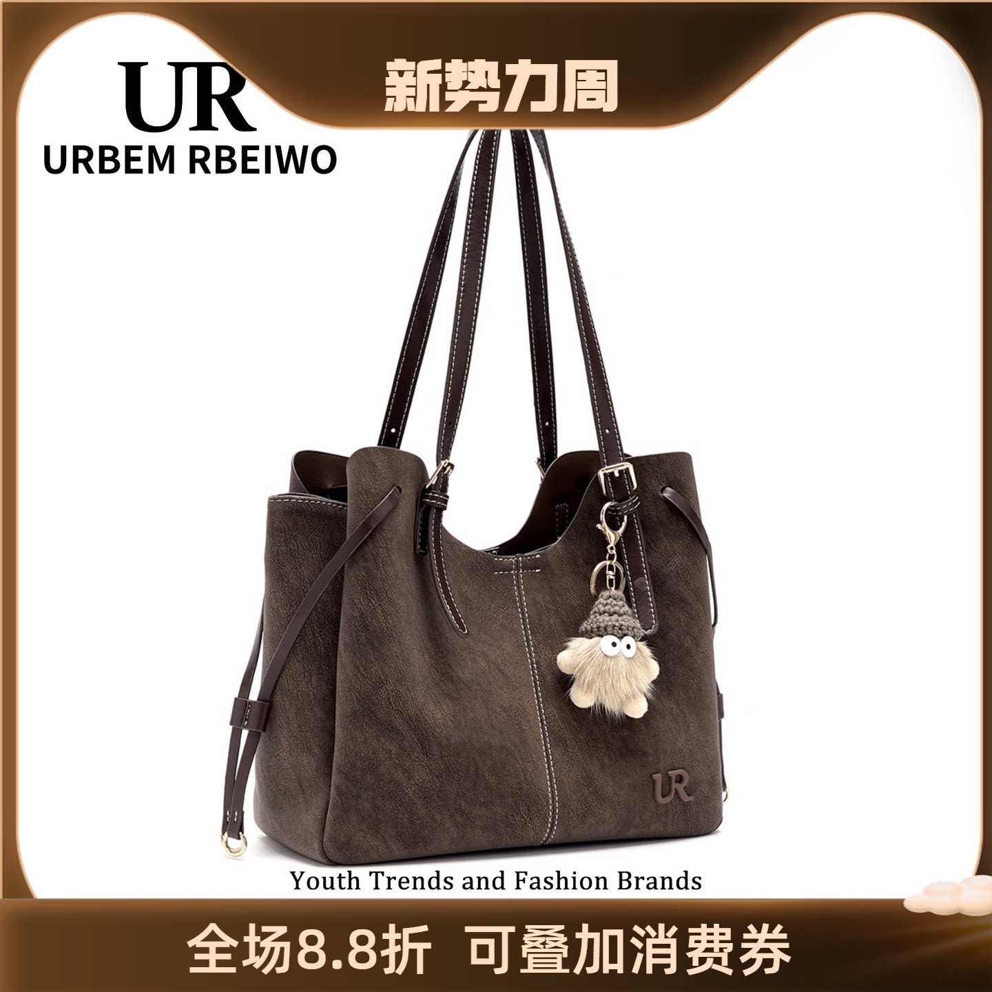 UR bag women's autumn and winter American vintage bucket bag Maillard style large capacity tote bag tote bag shoulder commuter bag