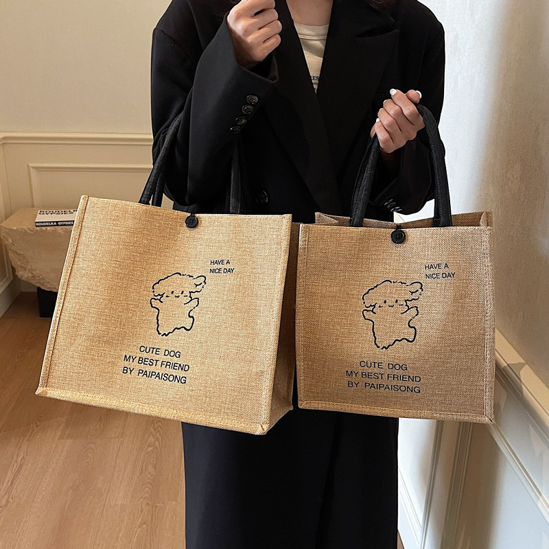 Canvas bag women's handbag large capacity tote bag 2025 new fashion outing cartoon linen tote bag