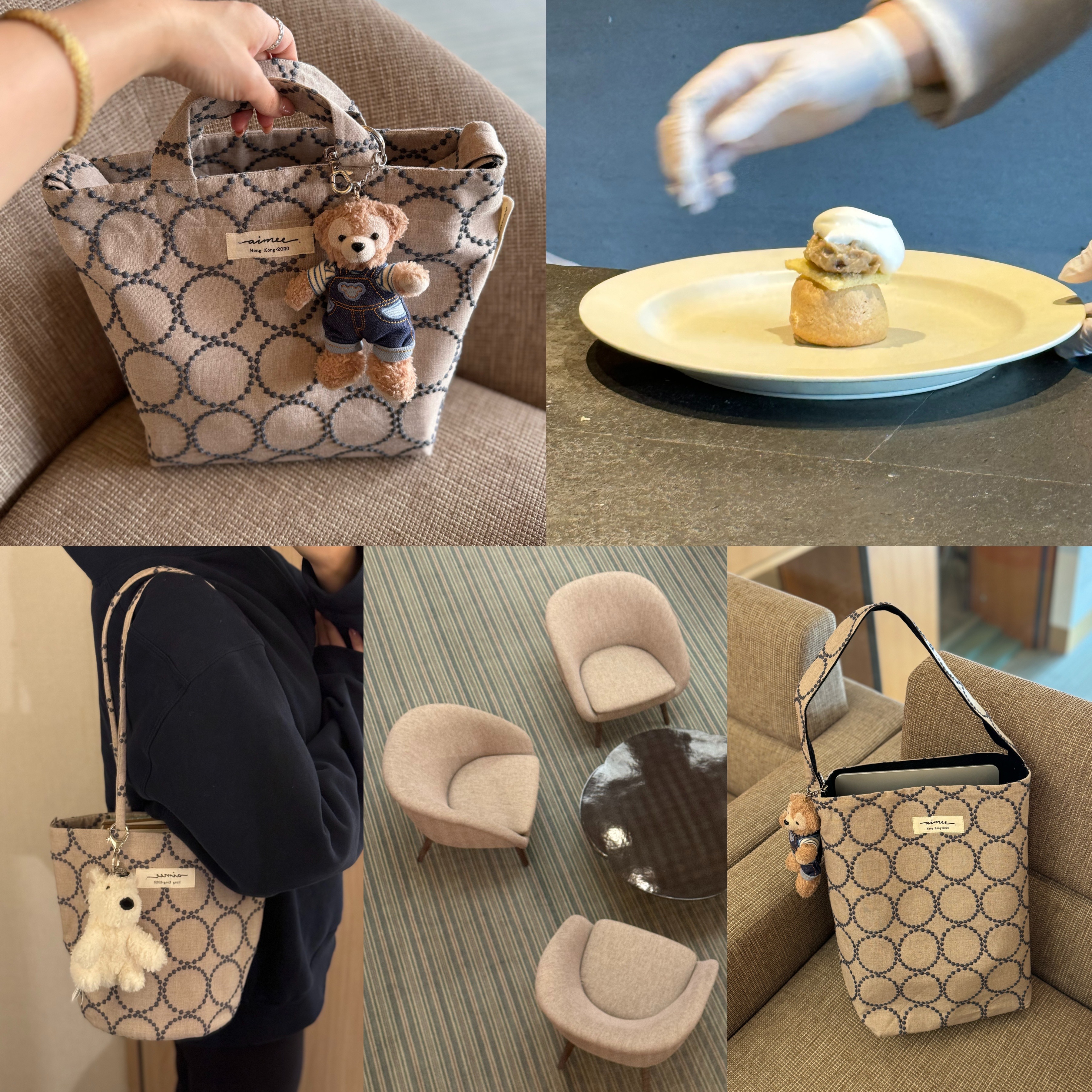 Ball chain Japanese embroidery bucket hat rabu cloth eco-friendly shopping bag commuter canvas bag shoulder bag