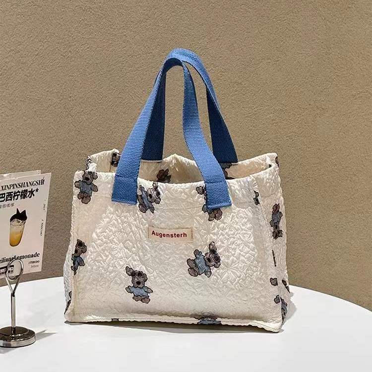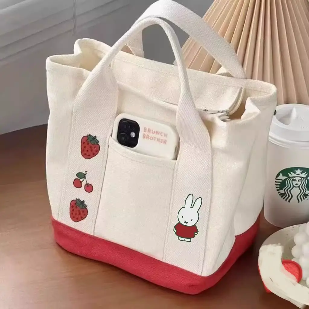 Cute cartoon canvas bag lunch box bag bag large capacity handbag commuting to work small office worker miscellaneous items small bag