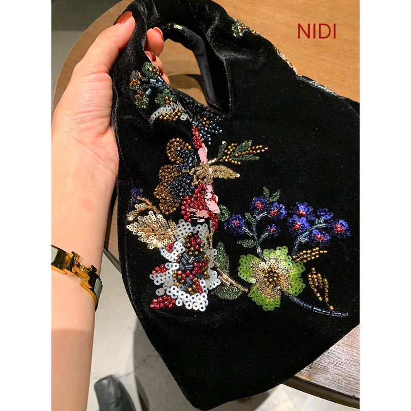 New Chinese sequin velvet handbag women's spring 2026 new vintage nail bead embroidery versatile handbag