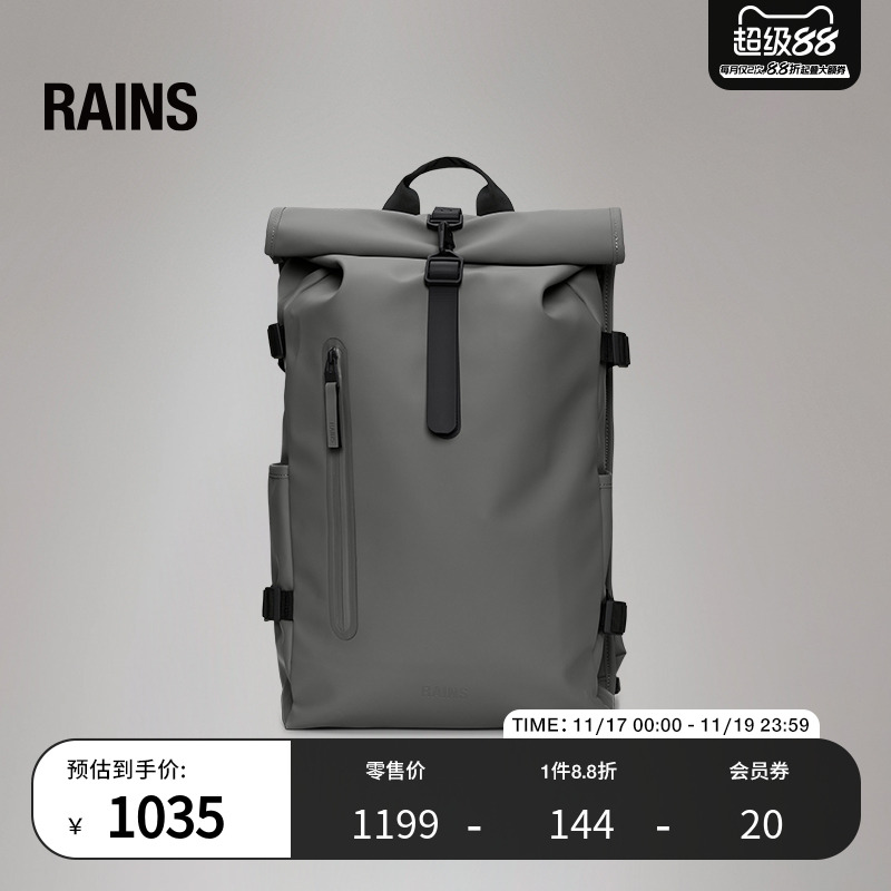 Rains Water Repellent Rolltop Backpack Computer School Bag Outdoor Travel Men's and Women's Rolltop Large/14590