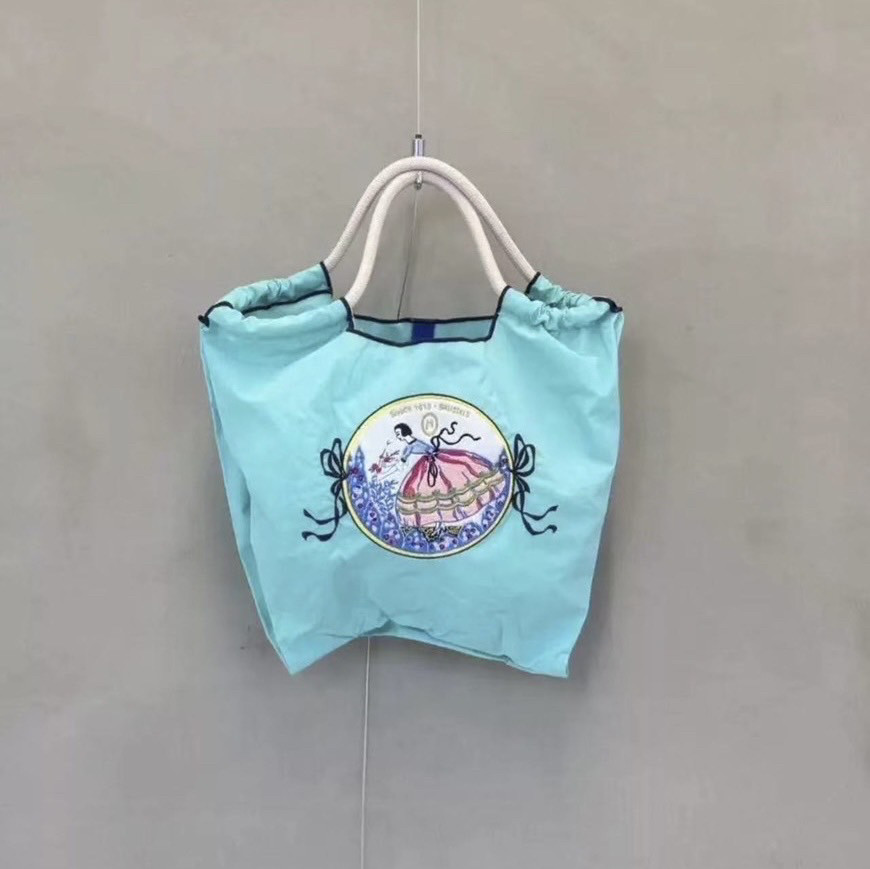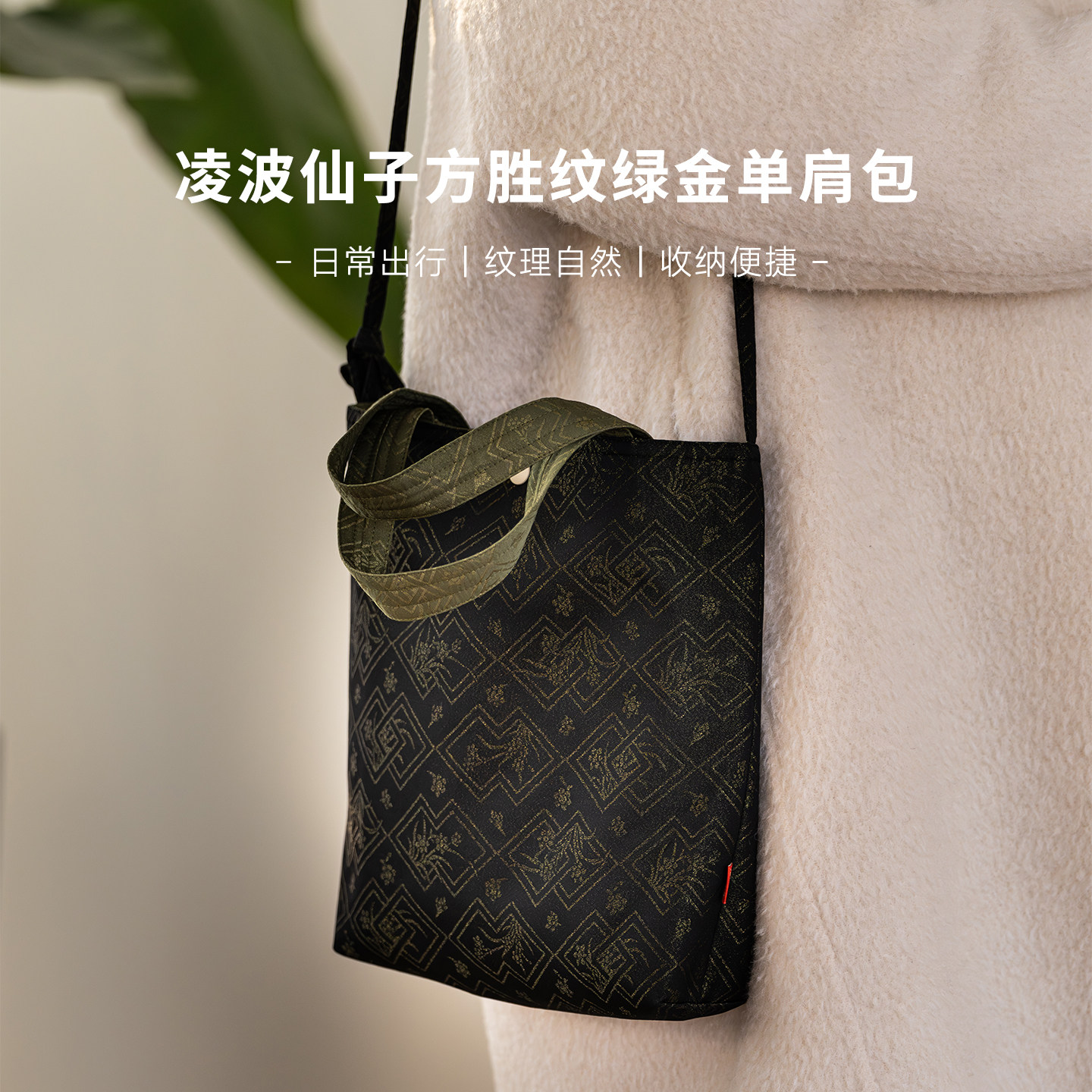 Slow Blue Tea Ceremony Lingbo Fairy Fang Sheng Pattern Green Gold Auspicious Ruyi Tea Travel Storage Shoulder Bag 27*24*6