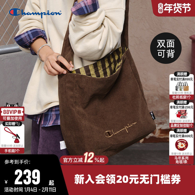 Champion Champion Shoulder Bag 2026 Spring New Men's and Women's Couple Fashion Satchel Tote Bag Reversible Multi-Back