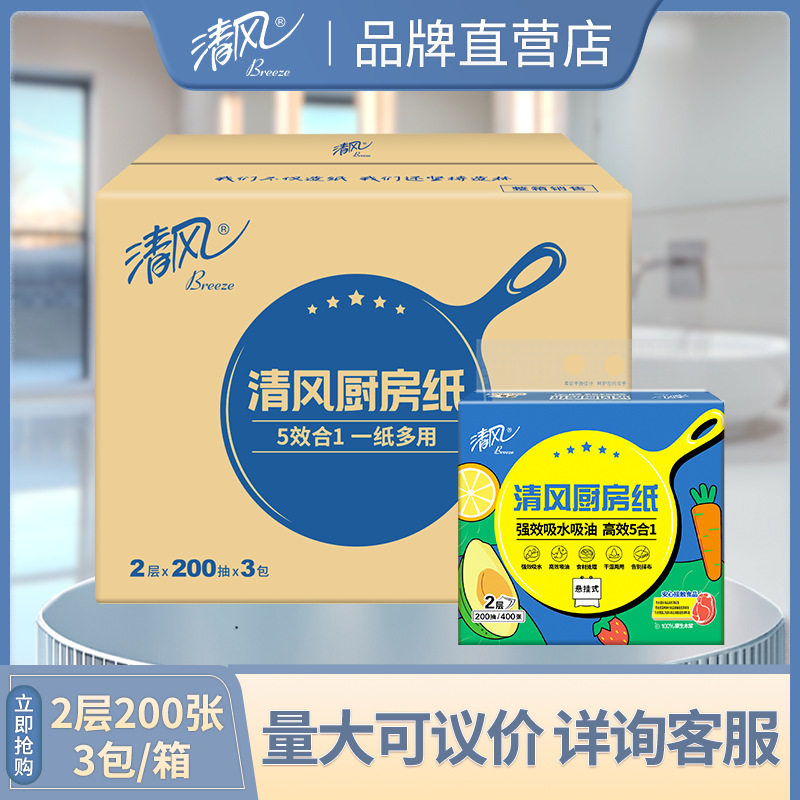 Breeze hanging kitchen paper drawing 2 layers 200 sheets/pack*3 packaging box kitchen paper towels B803GK