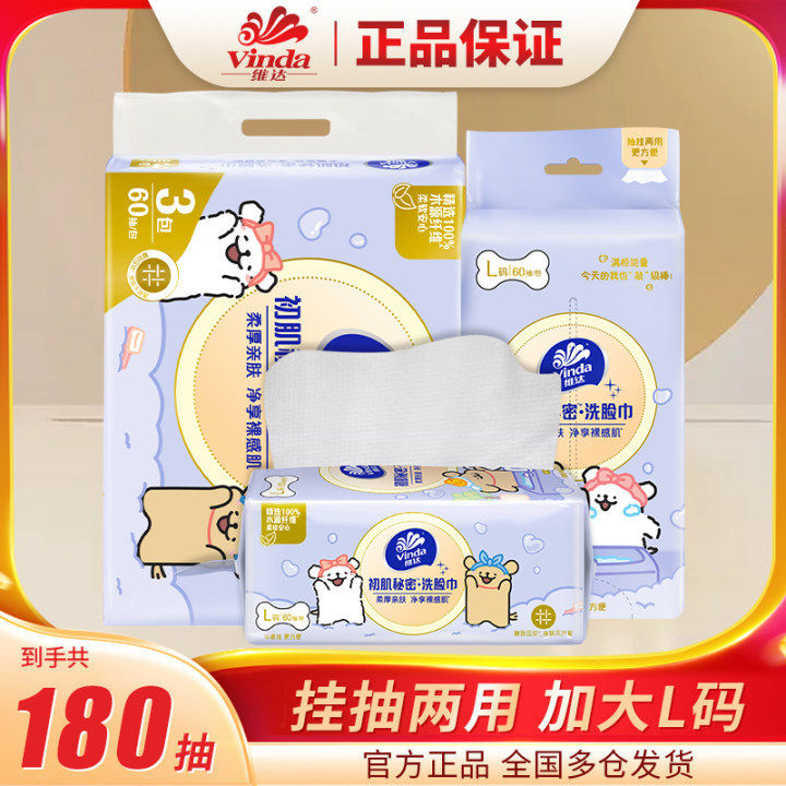 Vinda face towel line puppy co-branded hanging face towel 70 draw single pack disposable cotton soft towel Vinda