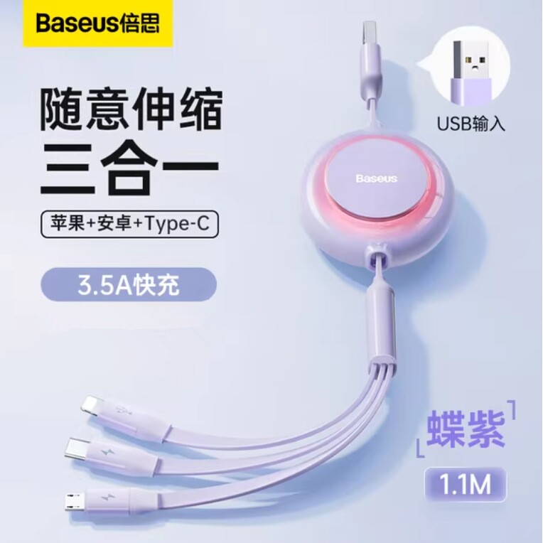 Baseus 3-in-1 mobile phone charging cable multi-functional, one drag and three telescopic, suitable for Apple fast charging data cable gifts