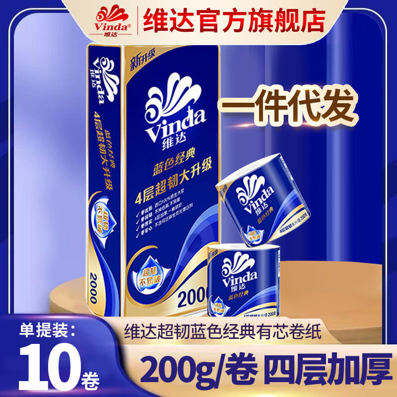 Vinda Roll Paper Blue Classic Core Roll Paper 4 Ply 200g Paper Towel Household Toilet Paper Roll Paper Letter Toilet Paper