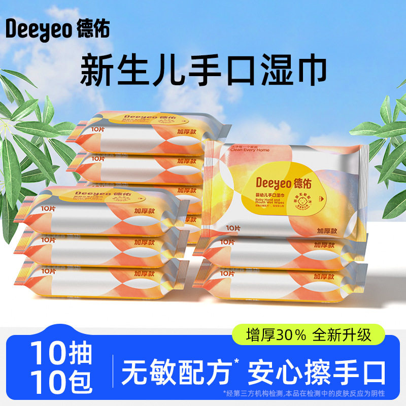 Deyou Baby Wet Towels 10 Draws 10 Packs Newborn Thickening Wet Tissues for Going Out Carry Portable Wet Tissues with Carry On