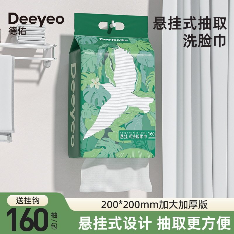 Deyou disposable wall-mounted face towel thickened and enlarged, hanging makeup remover family pack 160 draws*1