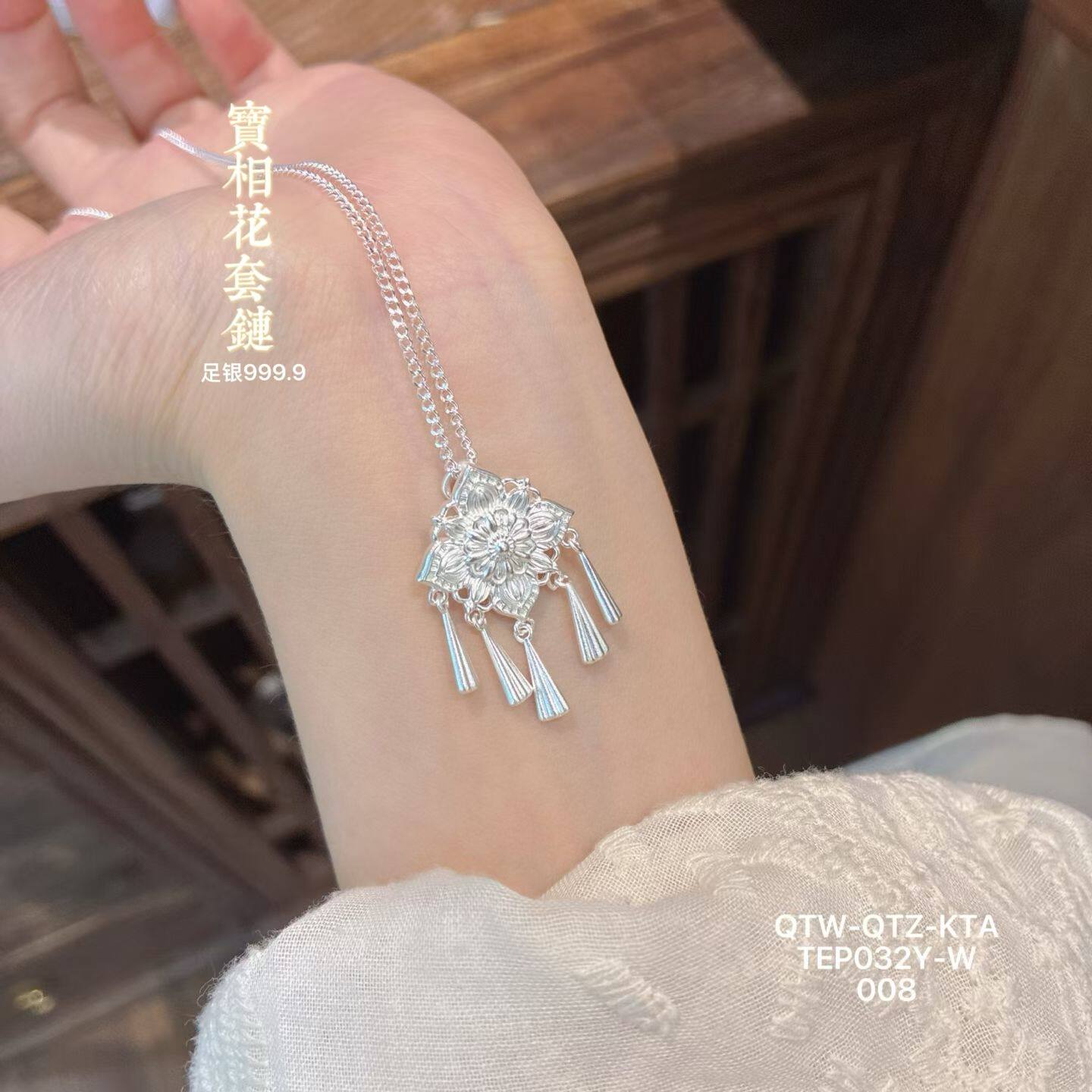"Hydrangea" foot silver 999.9 silver necklace women's fashion ethnic style sterling silver new Chinese style Qixi gift