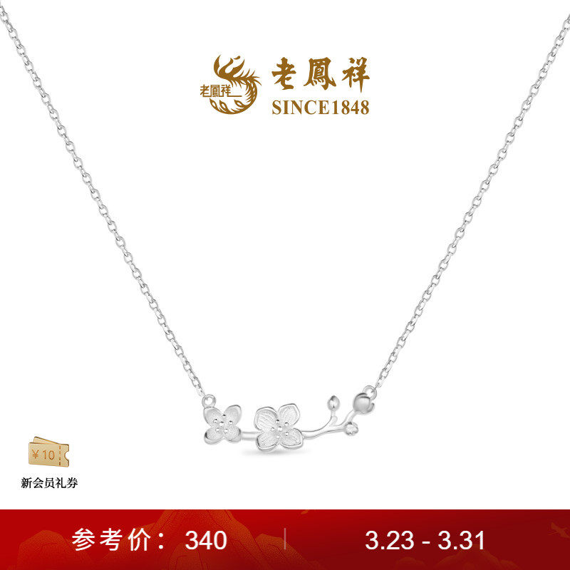 Lao Fengxiang three-dimensional plum blossom 925 new Chinese collarbone chain silver necklace holiday women's gift