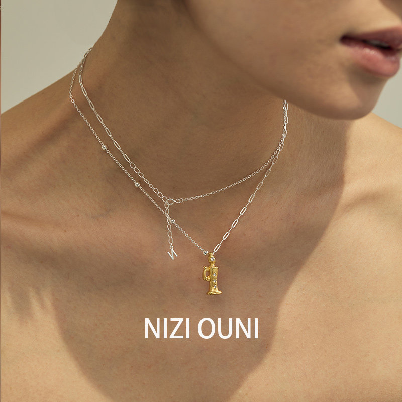 NIZI OUNI light luxury vintage candle long necklace women's burnt white 925 sterling silver niche gold candlestick sweater chain