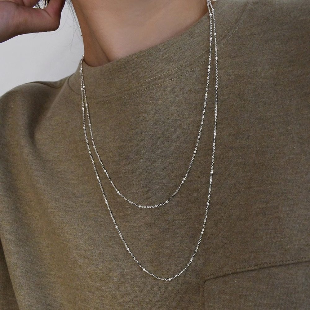 Imported craftsmanship 925 sterling silver small beads without pendant plain chain naked chain necklace sweater chain long women's autumn and winter versatile