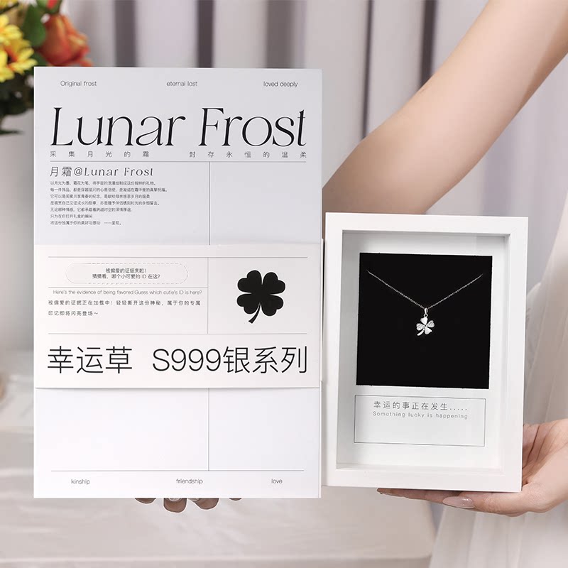 Moon frost silver clover necklace women's light luxury niche design silver necklace collarbone chain birthday gift for girls