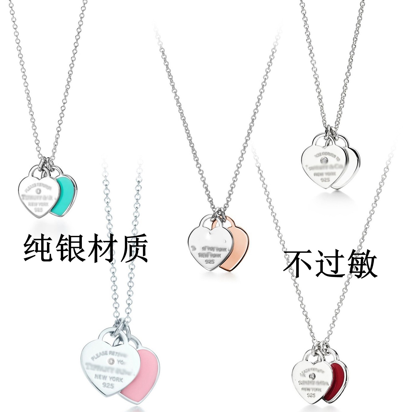 T family classic love pendant necklace non-allergenic S925 sterling silver double heart red enamel clavicle chain does not fade