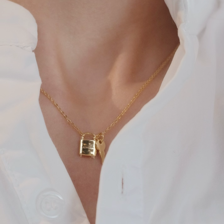 Heymen Black Door Key of Heaven Original Design Small Gold Lock Women's 925 Silver Gold Plated Necklace