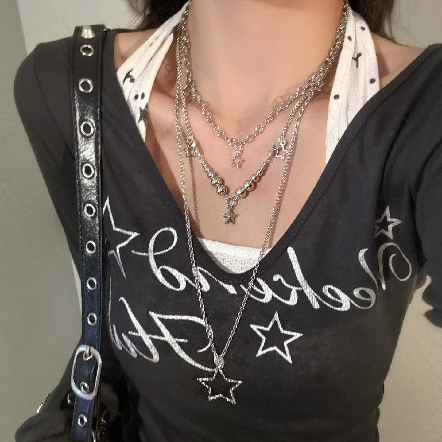 Y2K Spice Girl Star Necklace Niche Pendant Clavicle Chain Multi-layered Wear Millennial Sweet Cool Girl Light Ya Sweater Chain