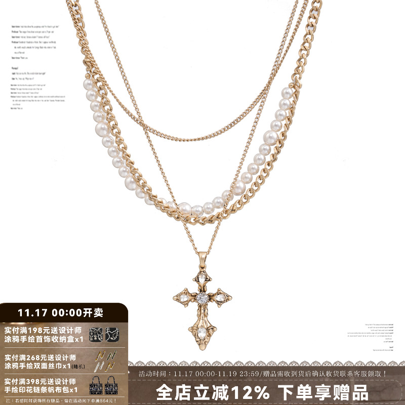 SUMIYAKI American Baroque Pearl Cross Necklace Premium Stacked Sweater Chain