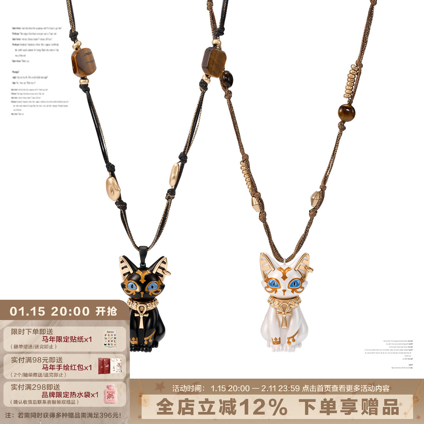 SUMIYAKI Eye of Life Pharaoh Egyptian Cat Sweater Chain Cat Anka Tiger's Eye Handmade Beaded Necklace
