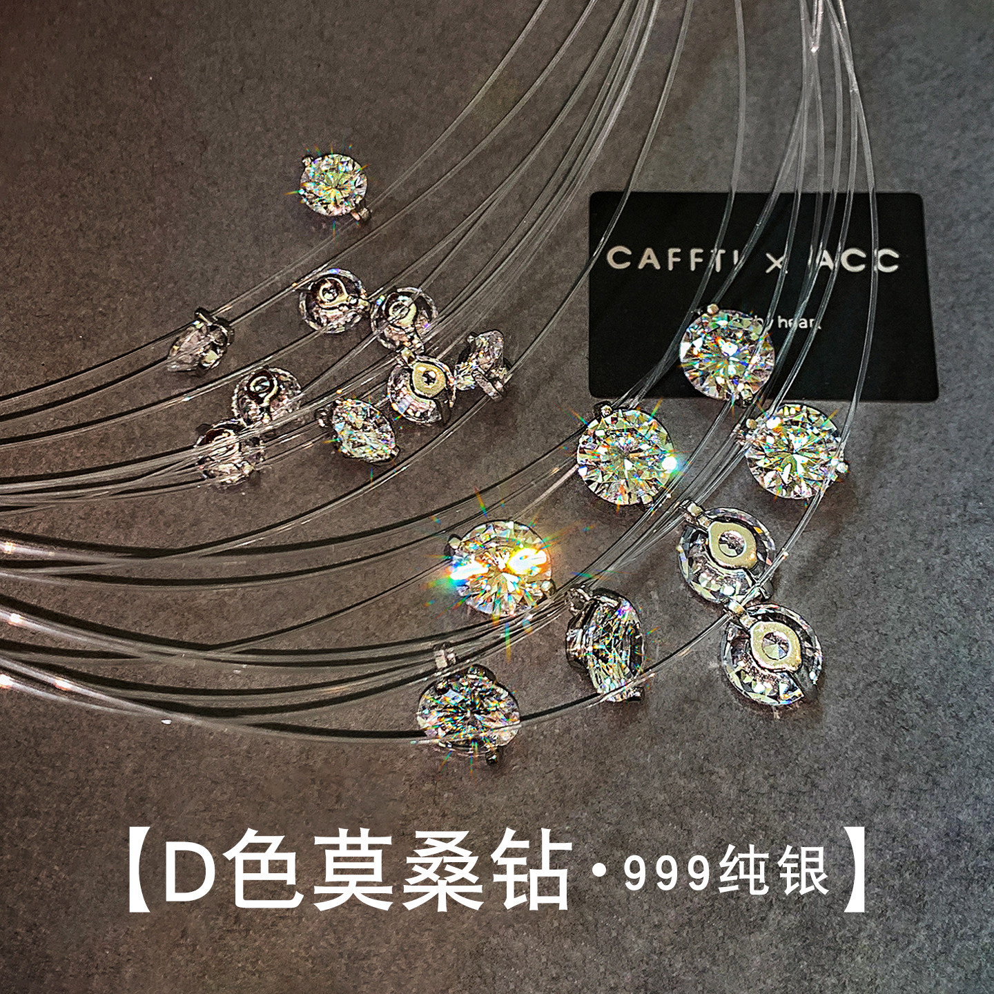 999 sterling silver Zhao Lusi same moissanite diamond pendant mermaid tears invisible fishing line necklace women's sweater necklace